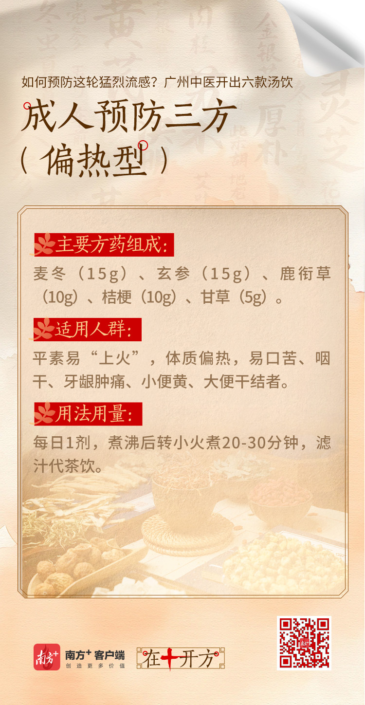在详实方面,除勤洗手、戴口罩、少鸠集外,中医强调“固护浩气,扶正黜邪”。广州医科大学附庸中医病院针对成东说念主与儿童不同体质制定了详实汤饮决策,匡助擢升叛逆力、促进康复。快来望望吧!